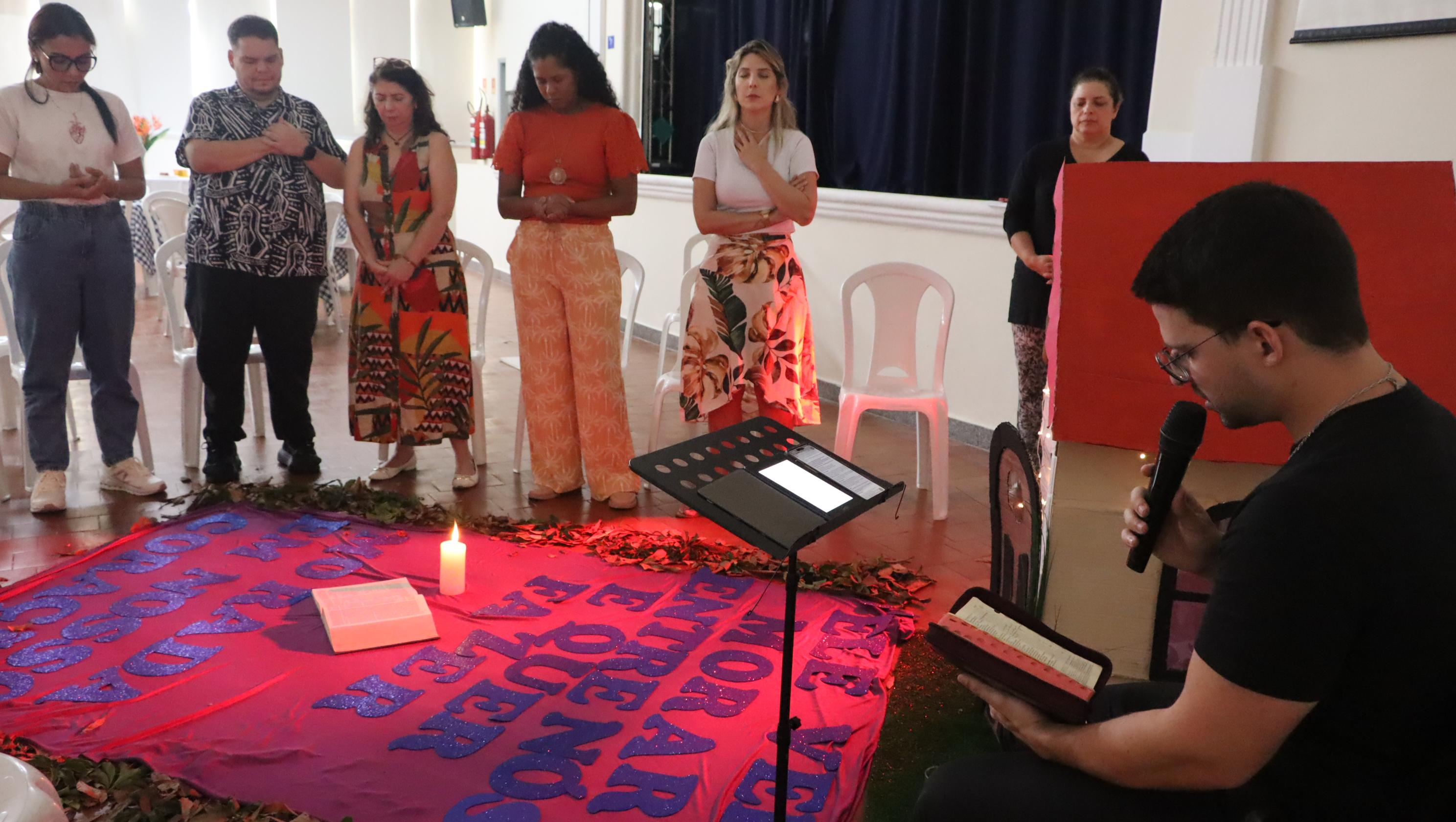 Durante o encontro, que contou com a presença do seminarista Arthur Varanda, Huan Pignaton, assistente de pastoral, Matheus de Souza, professor de Ensino Religioso, e de Andrea Almeida Martins, coordenadora do SOR, os participantes ainda ouviram as palavras do Senhor (leitura bíblica) e compartilharam experiências pessoais, formando uma grande egrégora de amor e união.